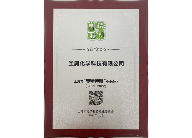 近日,经上海市经济和信息化委员会评审,圣奥化学荣获2021-2022年度上海市“专精特新”中小企业荣誉称号。
