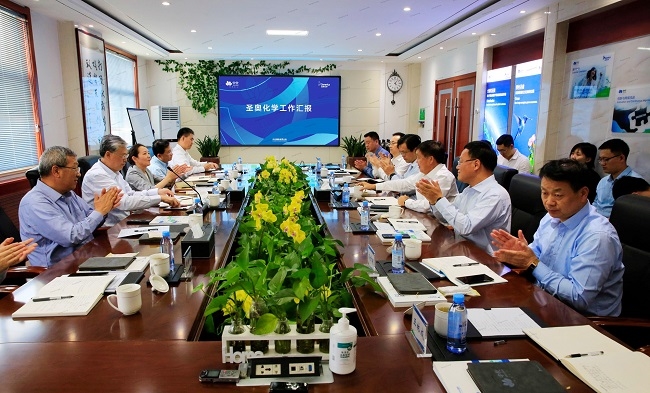 7月23日,李凡荣总经理一行赴圣奥化学子公司泰安圣奥调研指导,听取工作汇报,并就生产运营、安全管理、未来发展等情况进行交流。中国中化副总经理、党组成员陈德春,安全总监张增根,战略执行部总监张学工,战略与投资部总监胡徐腾,党组秘书、办公室主任李波,化工事业部总裁、中化国际总经理、圣奥化学董事长刘红生,中化国际副总经理、圣奥化学CEO苏赋,化工事业部办公室主任、中化国际董事会秘书柯希霆等陪同调研。