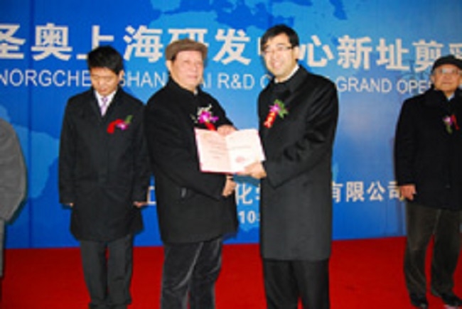 (2010年1月11日,上海)全球最大的橡胶防老化剂供应商江苏幸运/168飞艇官方开奖(以下简称“江苏圣奥”)上海研发中心今日在上海张江高科技园区正式扩建落成,这标志着江苏圣奥自主研发全面进入快速发展时期。南京工业大学校长、中国工程院院士欧阳平凯、中国化工协会精细化工委员会主任委员王大全等嘉宾均到场表示祝贺。江苏圣奥首席营运官兼首席财务官蔡峥琦携公司其他高层也一道出席了本次典礼,并向南京工业大学校长欧阳平凯院士和中国化工协会精细化工委员会主任委员王大全颁发聘书,正式邀请其担任技术顾问,以进一步增强江苏圣奥产学研一体的研发系统实力。