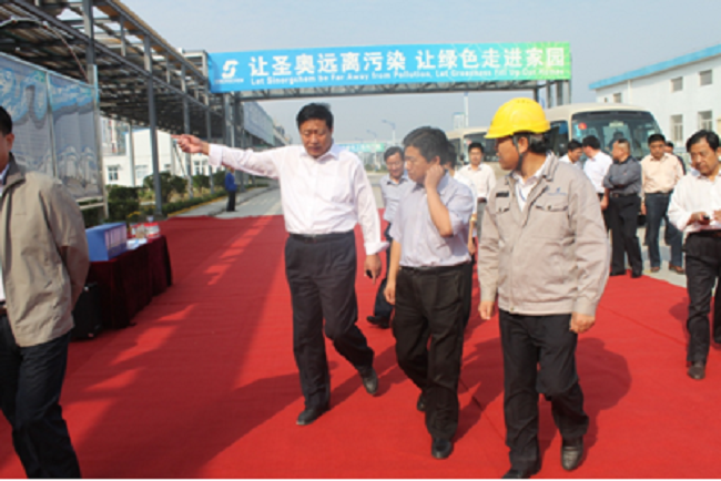 菏泽市委常委、组织部长带领市环保局、经信局、水利局、建设局等各部门,在曹县县长张红旗陪同下对凯雷圣奥迎淮工作进行了现场检查,凯雷圣奥总经理焦仁平陪同。胡尚山一行到公司三废处理、生物指示池、排污口进行实地查看,并详细听取了公司总经理焦仁平对公司固废处置系统及治污设施配备情况的介绍,对凯雷圣奥的环保治理工作给予了肯定和赞扬。