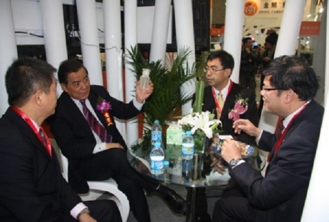 图:中国石油和化学工业联合会会长李勇武莅临展位指导工作,希望我司要继续发扬优势,做好做强橡胶防老剂。