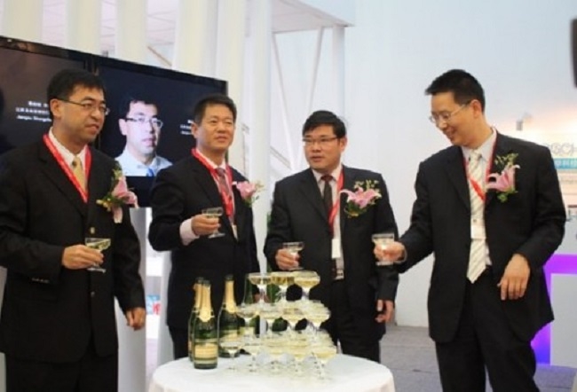图:香槟祝酒,开幕式上,公司领导层预祝本次展会举办成功。