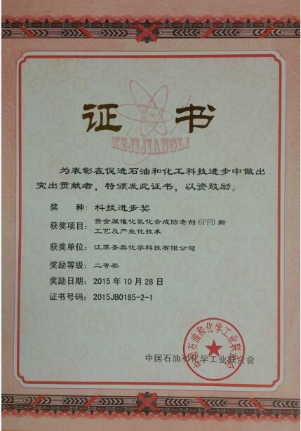 11月18日,全国石油和化工科技创新大会在北京人民大会堂新闻发布厅召开,原十届全国人大常委会副委员长顾秀莲、中国石油和化学工业联合会会长李寿生、名誉会长李勇武等领导出席会议。江苏圣奥的“贵金属催化氢化合成防老剂6PPD新工艺及产业化技术”项目荣获科技进步二等奖。