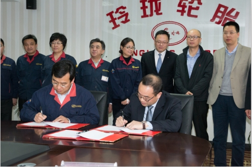 图为中化国际常务副总经理覃衡德与玲珑轮胎董事长王锋签署战略合作协议