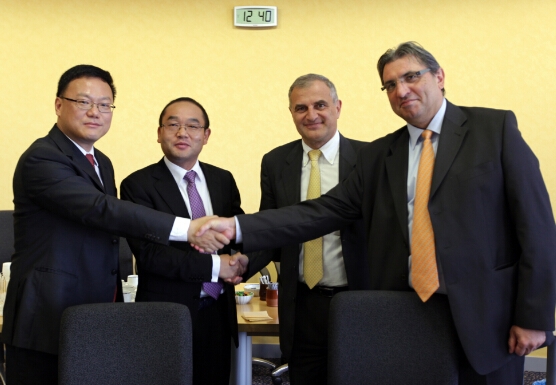 6月25日-26日,潘正义一行拜访了位于法国克莱蒙费朗的米其林集团总部,与米其林集团执行委员会成员、材料部件全球高级副总裁 Jean Christophe Guerin先生、集团首席采购官Luc Minguet 先生等高层会晤。米其林方面介绍了其公司愿景、全球市场形势、研发体系、业务板块以及经营情况等,潘正义介绍了中化集团的发展历程、全球战略推进及主要业务板块经营情况,并着重阐述了中化国际在橡胶产业的发展战略,双方就共同关心的环境保护、知识产权保护、企业社会责任、绿色轮胎产业发展趋势等话题进行了坦诚务实的沟通交流,并就2014年米其林必比登挑战赛有关合作事宜进行了商谈。双方均表示,基于相似的公司理念及发展愿景,中化与米其林之间合作空间广、潜力大、机遇多,此次会晤将进一步加深彼此的了解,提升双方的伙伴关系,为未来更高层面、更广领域的全面合作打下了坚实的基础。