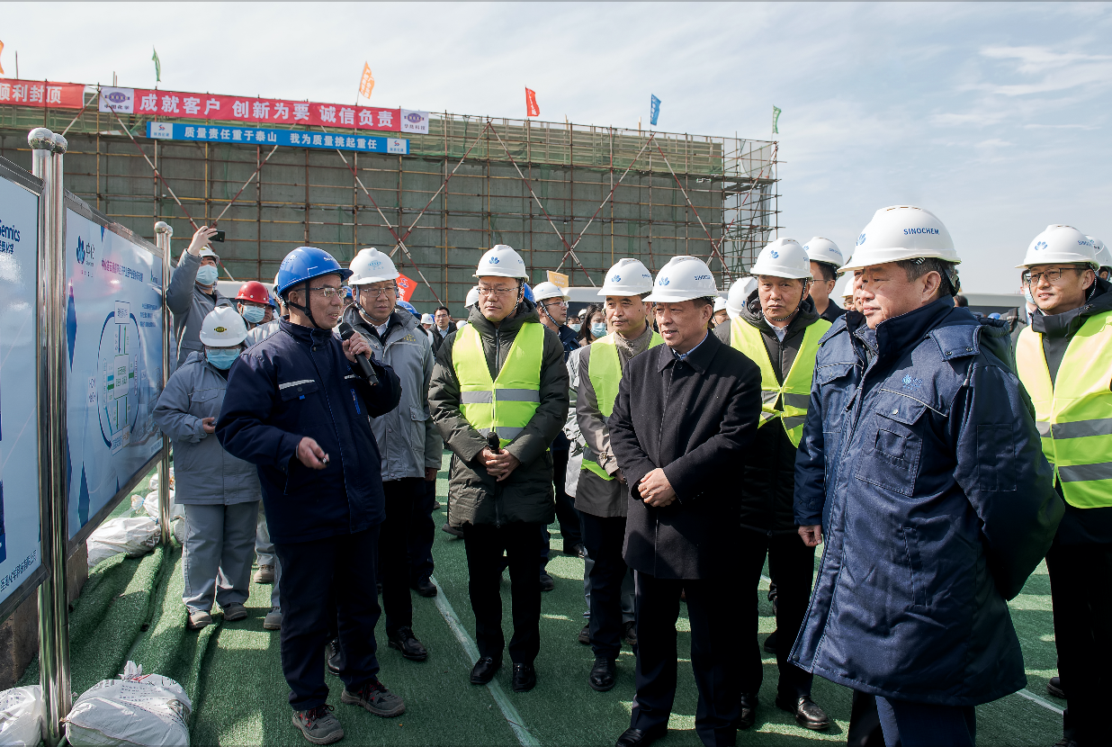 2月22日,中国中化董事长、党组书记宁高宁一行赴中化连云港循环经济产业园调研圣奥化学聚合物添加剂项目。