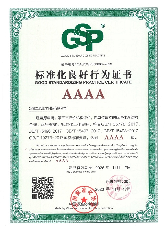日前,安徽圣奥顺利通过了标准化协会专家组验收,获得国家AAAA级“标准化良好行为企业”证书,这意味着安徽圣奥在标准体系建设、技术成果转化、对标达标等方面成果突出,达到国内先进水平。