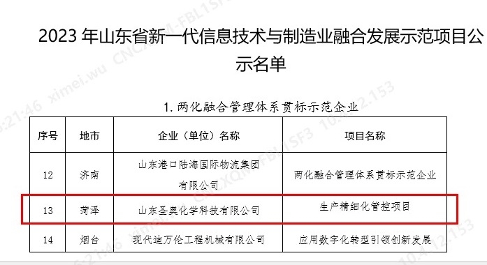 山东省工业和信息化厅日前公布了《2023年新一代信息技术与制造业融合发展的示范名单》,山东圣奥凭借“生产精细化管控项目”,被认定为两化融合管理体系贯标示范企业。
