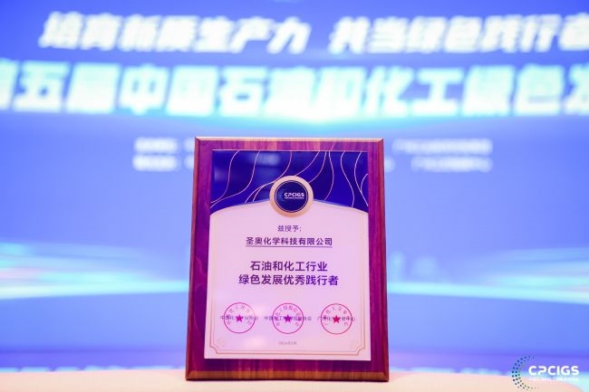 5月29日至31日,由中国工业经济联合会、中国化工环保协会等机构联合主办的第五届中国石油和化工绿色发展峰会在广州举行。会议发布《中国石油和化工行业绿色发展蓝皮书(2023-2024)》,圣奥化学自主研发的“碳管家”系统凭借双碳管理一站式服务实现智慧降碳入选蓝皮书,成为石化行业绿色发展优秀践行者案例。