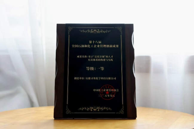 近日,在第十八届全国石油和化工企业管理创新成果评选中,安徽圣奥“基于‘青蓝计划’的人才培养体系的构建与实践”项目荣获一等奖。该奖项由中国化工企业管理协会权威评定,是行业内管理创新领域的重磅荣誉之一。