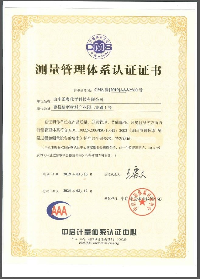 The measurement management system of Sennics Shandong covered the whole measurement process of the company's production and operation, involving 11 workshops and departments, such as the quality management department, production department and HSE department. It included the company's production process control, quality testing, safety testing, energy management, operation and management and other measurement activities, as well as the control and management of all related measurement equipment and process. Sennics Shandong has passed the certification of the national measurement management system, which indicates that its management level and measurement ability have been recognized the nation. This certification will help to enhance the company's product credibility and brand influence, and promote the overall development of the industry.