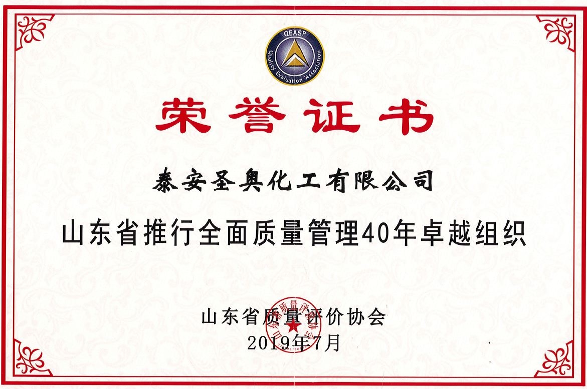 Sennics Tai'an Named "Outstanding Organization for Implementing TQC in Shandong Province over Past 40 Years"