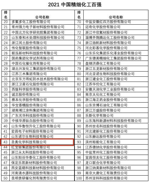 On April 27, The "2021 Fine Chemical Industry Summit and China FineChem 100 Conference" jointly sponsored by China Fine Chemical Raw Materials & Intermediate Industry, China Chemical Industry Information Association and China National Chemical Information Center (CNCIC) was held online. During the conference, the list of "2021 China FineChem 100" was released. Sennics made the list for the fourth time with its outstanding achievements in innovation ability, sustainable development, corporate social responsibility (CSR) fulfillment and management ability, ranking 43rd on the list.