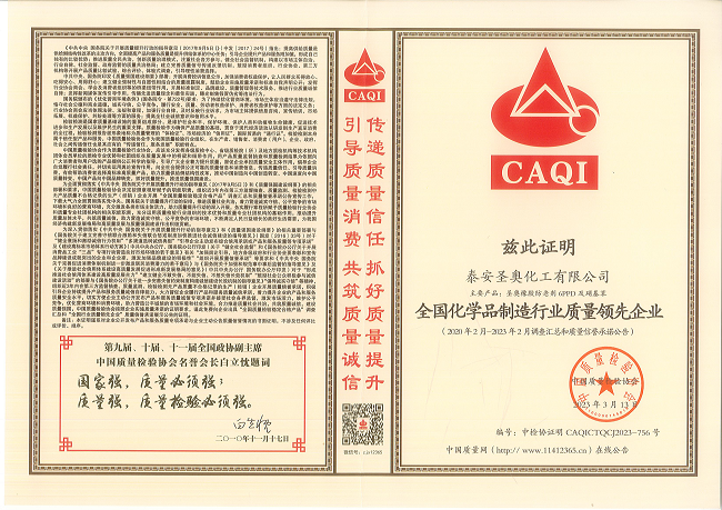 A few days ago, Sennics Tai'an and its products, including rubber antioxidant 6PPD and nitrobenzene, won two awards, namely "National Leading Enterprise in Quality in the Chemical Manufacturing Industry" and "National Integrity Brand in Product and Service Quality", from China Association for Quality Inspection (CAQI).